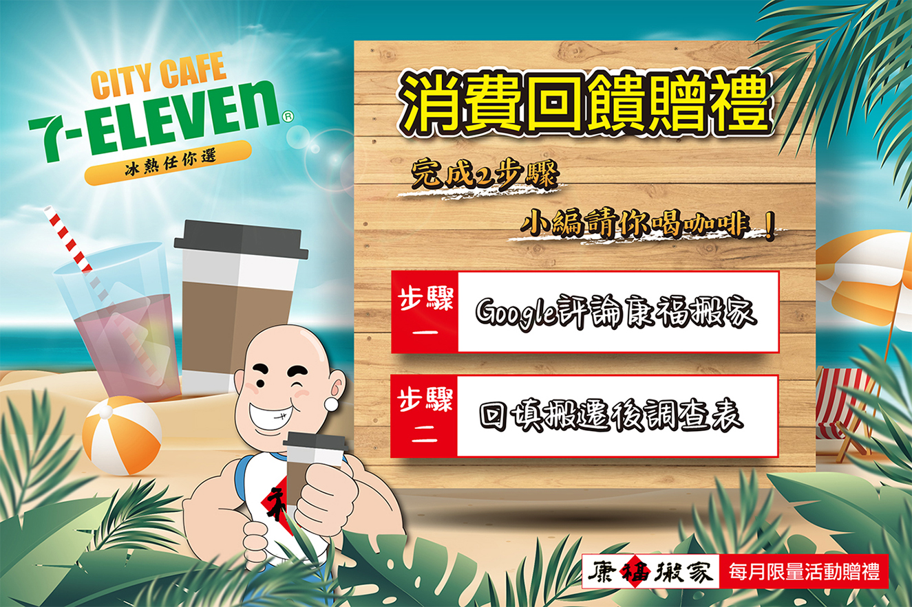 ◆關於咖啡贈送活動,請洽康福搬家客服部:02-2766-6666分機285。週一至週五 10:00-18:00