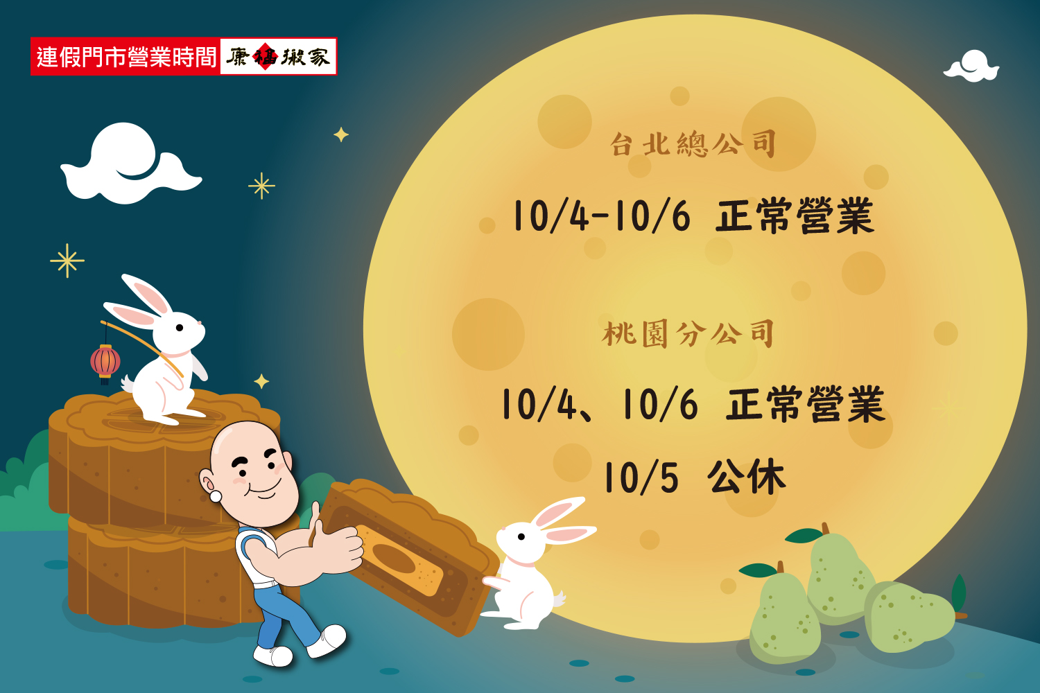 10/5 門市公休,搬家正常服務
