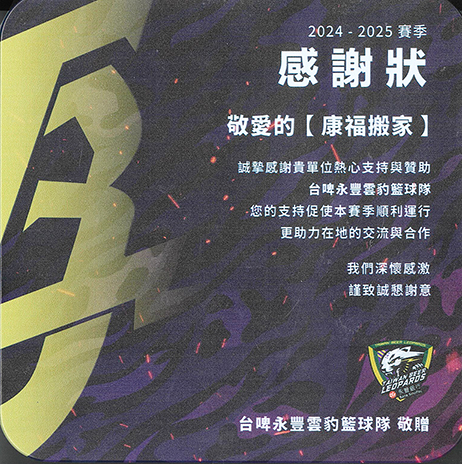 樂天桃猿棒球Rakuten Monkeys,台啤永豐雲豹籃球Taiwan Beer Leopards,台新戰神Taishin Mars。